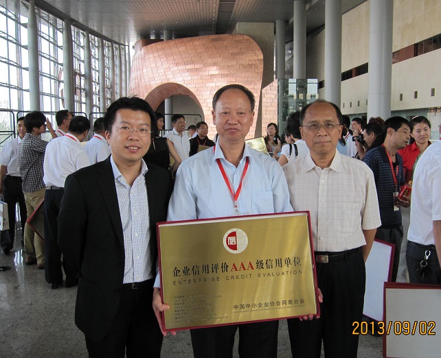 董事長廖世明先生參加在北京國家會議中心、我司被授予“3A級網(wǎng)商信用企業(yè)”的榮譽(yù)稱號,并得到了中國中小企業(yè)協(xié)會信用管理中心領(lǐng)導(dǎo)的高度評價和贊許。